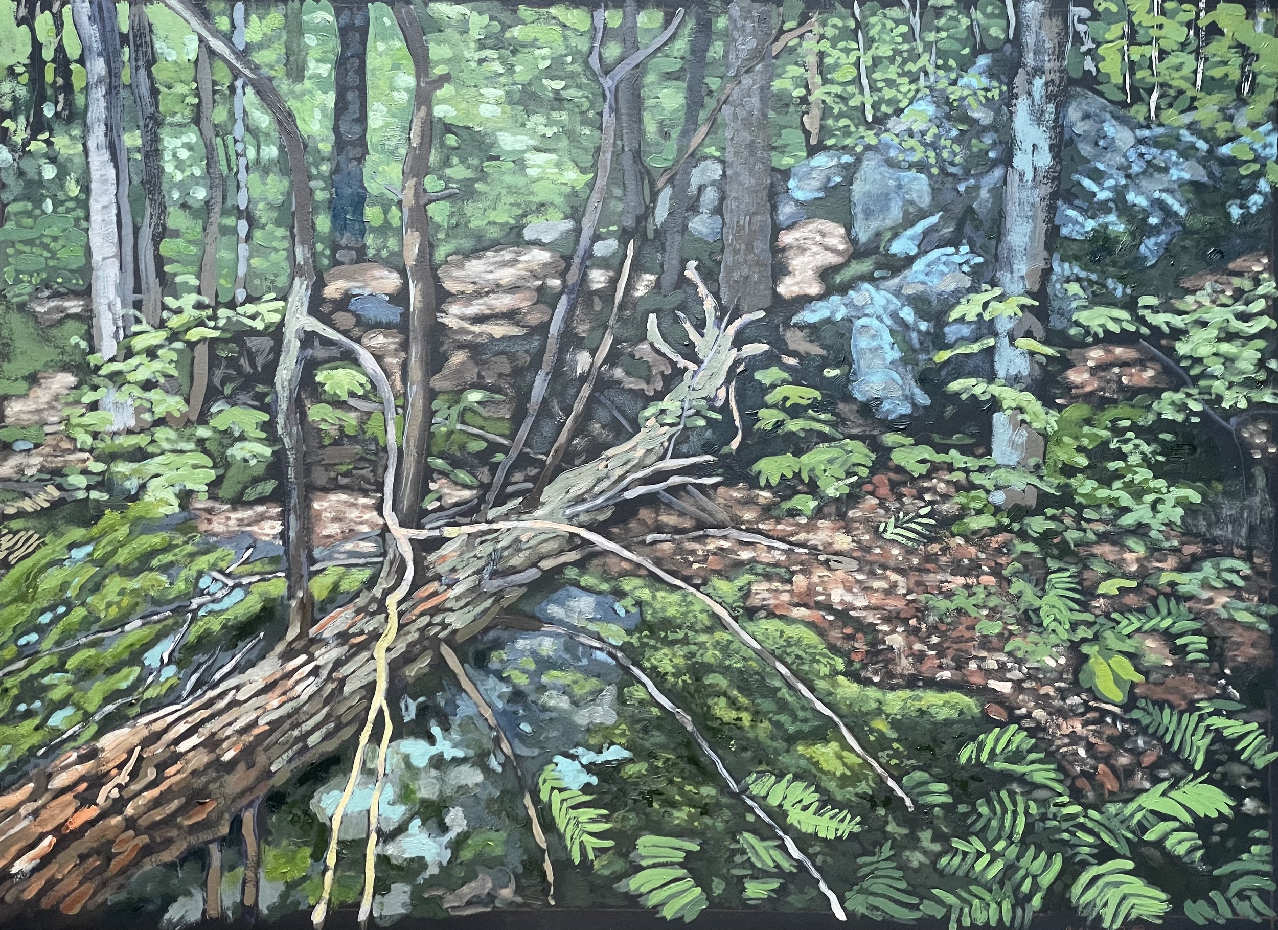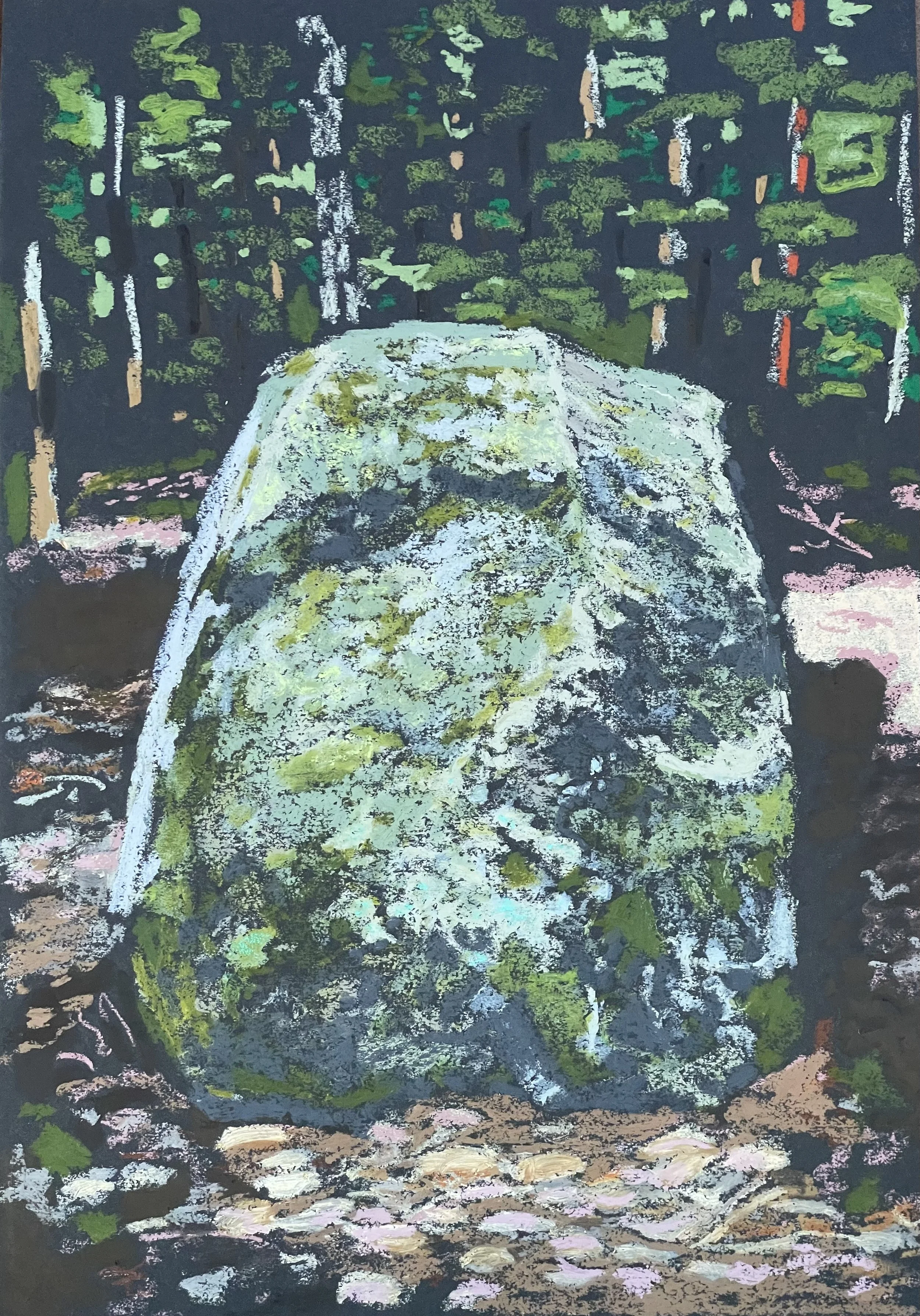 Sunlit erratic 15x21 Oil and oil pastel on paper 2022